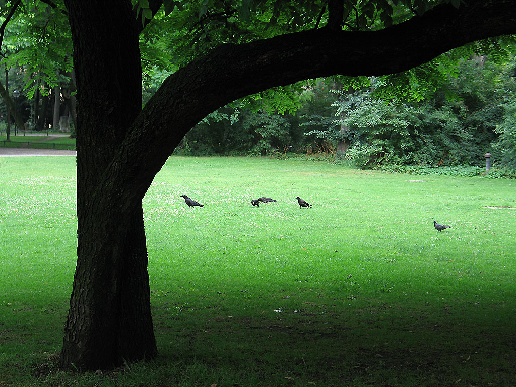 bellissimi i colori, m piace una sacco la gradazione del verde dall'ombra dell'albero fin verso gli uccelli.
