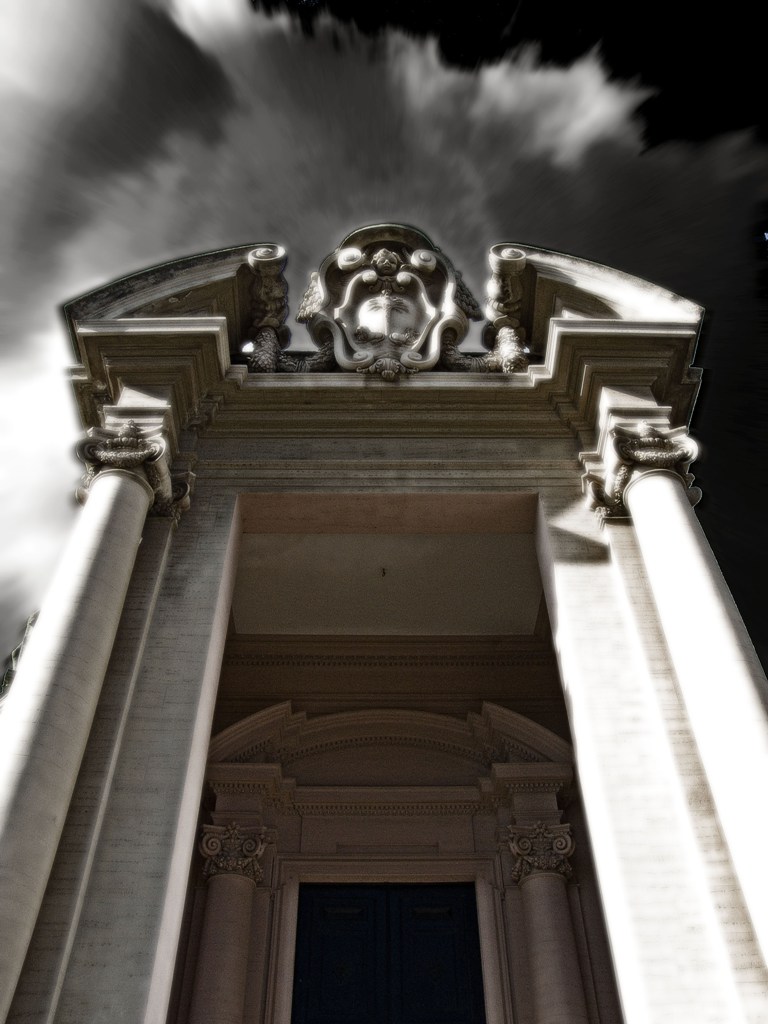 Per la questione prettamente fotografica, invece, non mi convince moltissimo la forte luce bianca su tutta la parte destra che abbaglia un po' troppo e distrae lo sguardo e l'attenzione dal senso che volevi dare a questa immagine.. così come lo è forse troppo acceso il bianco del cielo.. Gradevole il movimento delle nuvole che portano lo sguardo verso la parte alta della porta, facendone apprezzare quella zona..