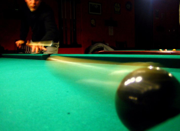 in questo caso,secondo me, il protagonista è proprio il mosso e va bene cosi' senza nessun dettaglio principale a fuoco o ben fermo. Come già detto unica cosa doveva essere la palla in un punto prima del bordo ed il pezzo di viso tagliato! Ti faccio un esempio se all'autore della foto non dispiace e nota come il bordo del bigliardo diventa anchesso protagonista