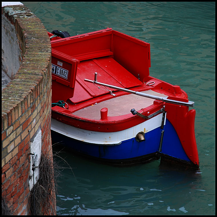 Quel rosso spicca maginficamente su quel verde spento delle acqua lagunari. Buona la scelta dell'inquadratura quadrata. Valorizza il tutto. Tiziano