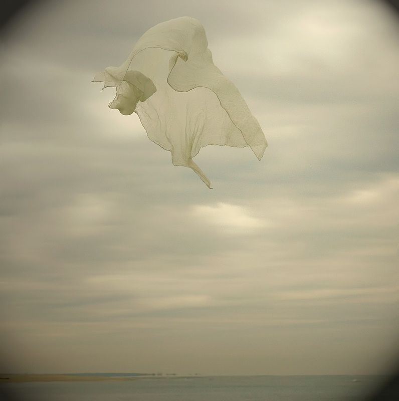 Certo, il momentum fermato dallo scatto è decisamente azzeccato (ma chissà quante prove sono state scartate...). La composizione però risulta piatta in profondità, poco contrastata, si perde il dettaglio materico della linea d'orizzonte che dovrebbe fare da contraltare al surreale e impalpabile del velo, e manca fortemente...