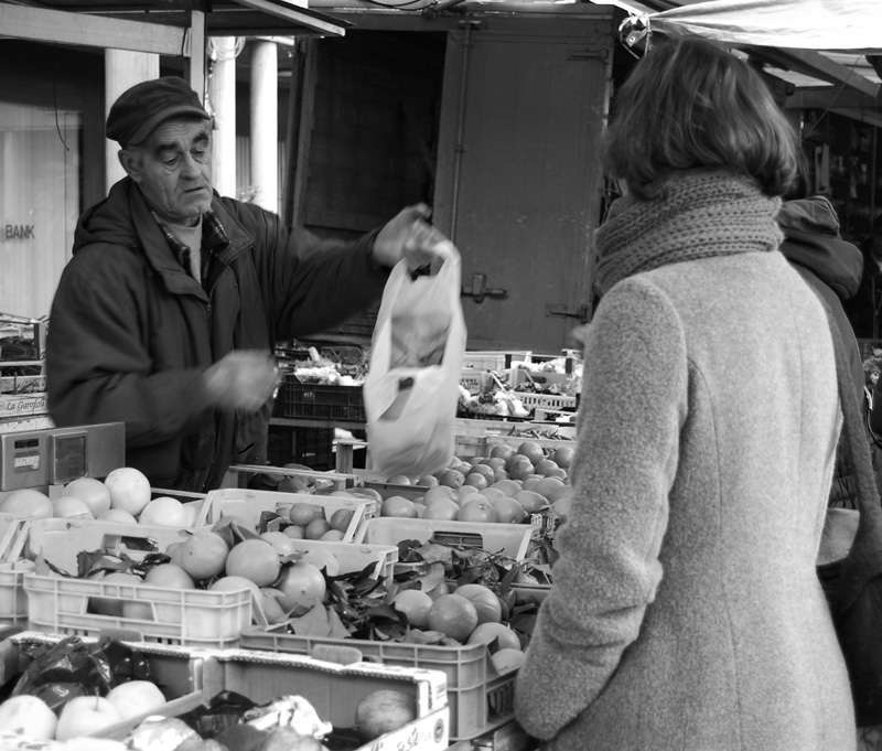 molto bella questa street, oltre ad un ottimo b/n c'e' anche l'azione motoria del vendtore.....brava cry Ok!