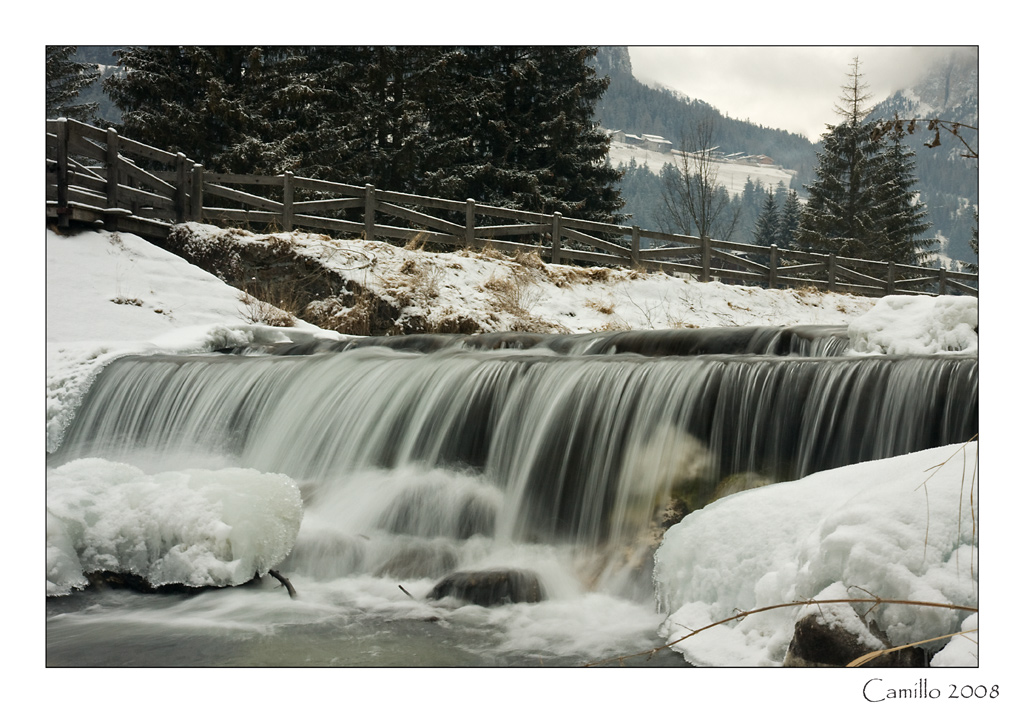 la foto mi piace molto, il senso del movimento dell'acqua è giustamente sottolineato dal tempo relativamente lungo, anche i colori mi sembrano appropriati, l'unica cosa il titolo: proprio non mi da l'dea del silenzio, tuttaltro, sento il fragore del salto dell'acqua.