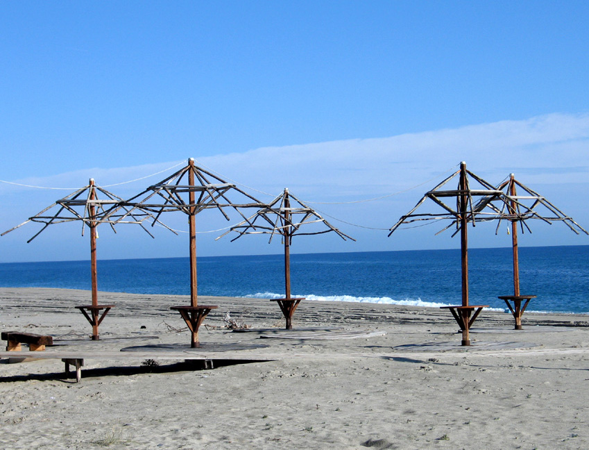 molto significativa questa foto con questi ombrelloni solo ossa che danno benissimo l'idea del mare d'inverno e sembrano aspettare pazienti l'arrivo dell'estate.