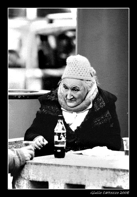 Ottimo scatto col quale hai saputo catturare un momento di intensa espressività del volto dell'anziana donna.