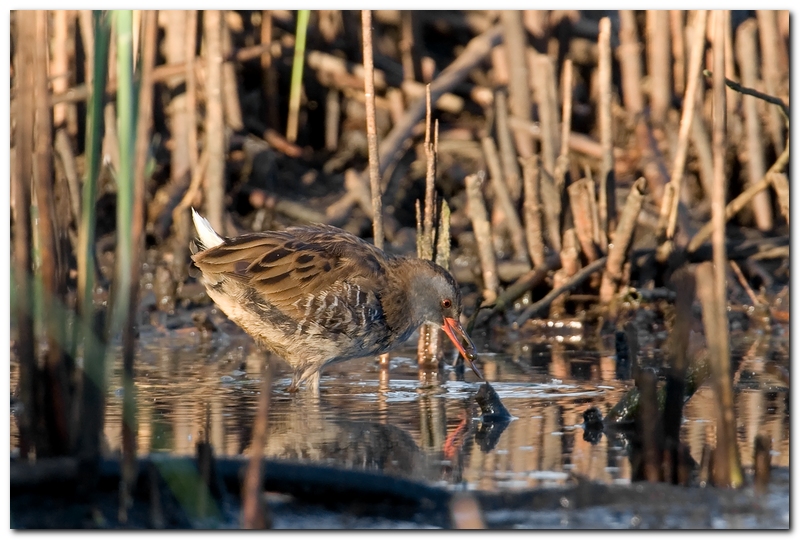 Quanto l'ho voluta questa bestiola, la sento sempre, intravedo spesso il suo occhio rosso e parte del becco nei canneti; tento di fotografarla comunque e spesso basta il bip della conferma della messa a fuoco per farla arretrare quel tanto che basta per farmi rinunciare. Mi ci è voluto due anni per raccogliere questo materiale su questo diffidente ma curioso volatile.