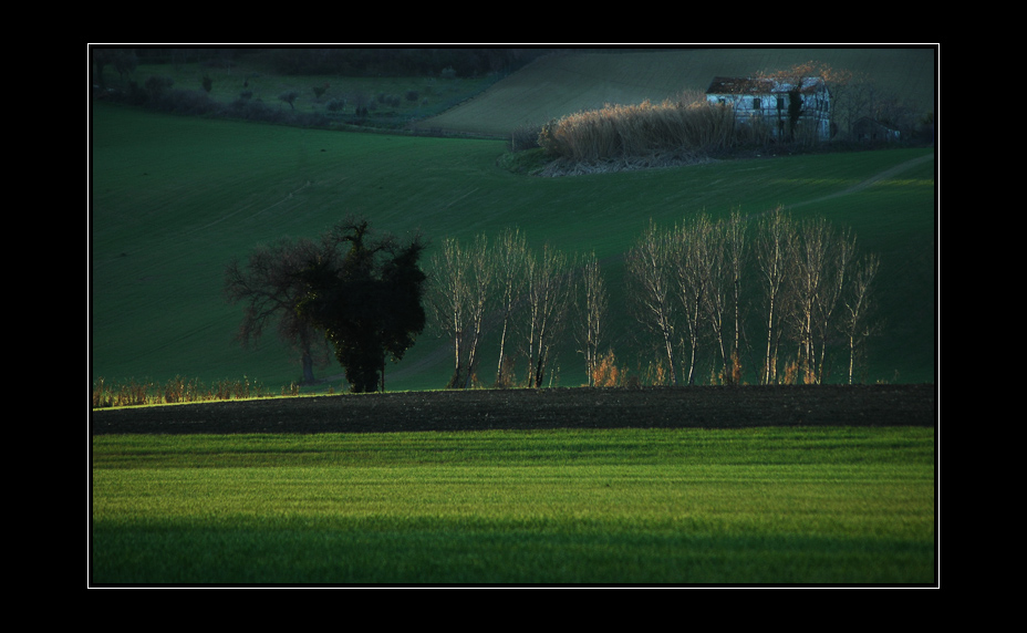 | FelixJ ha scritto: | Molto bella, bello il primo piano, concedimi qualche dubbio sul secondo, su quella casa abbandonata che da sull'azzurro, ciò significa che non è illuminata mentre i cespugli si.