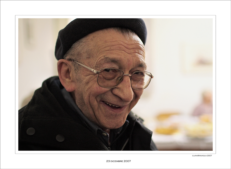 La forza espressiva di questo sorriso sereno "sfoca" qualunque critica di natura tecnica. Don Pino si affida alla tua sensibilità per trasmettere quest'attimo; non ha paura che un mezzo meccanico-elettronico posso alterare o "coprire" la sua personalità. Saluti.