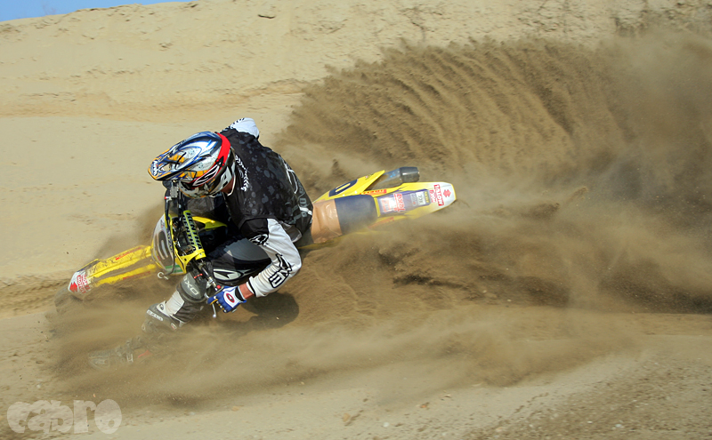Il belga Ken Dedijker scarica la potenza del suo Suzuki a centro curva