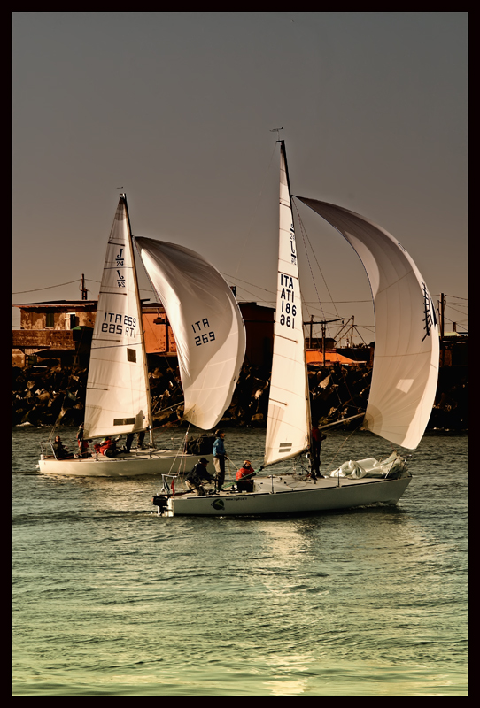 Gli aloni intorno alle vele non sono dovuti per aver esagerato con luci e ombre , ma sicuramente per l'utilizzo del filtro utilizzato per dare un maggior contrasto .