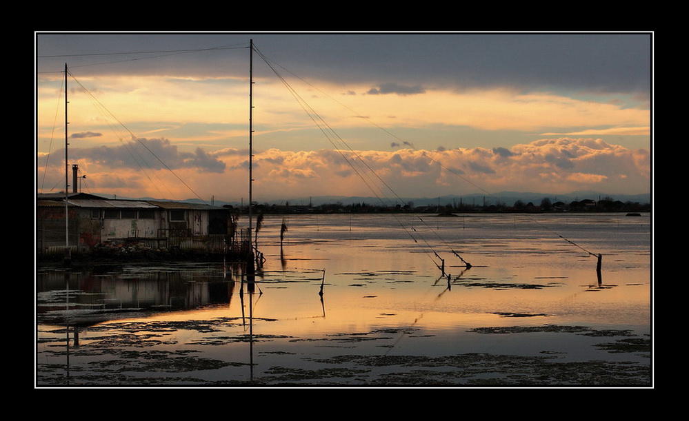 Incantevoli i riflessi sull'acqua e molto bello il cielo. Il capanno essendo in controluce è un po' penalizzato ma hai comunque gestito al meglio la difficile situazione. Una gran bella foto.