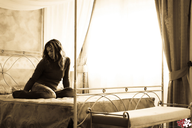 Per quanto riguarda la fonte luminosa cosi forte...ho dovuto giocare un po con i livelli per poter avere un viso della ragazza almeno un poco visibile. Al momento dello scatto non mi sono accorto che sarebbe servito un flash di schiarita per il viso. Avrei compensato cosi la parte piu scura non illuminata dalla finestra.