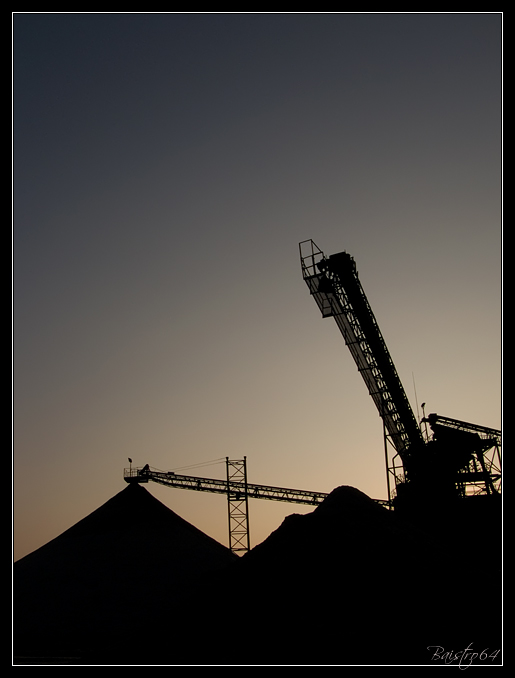 notevole il gradiente di luce molto soft e continuo. belle le sagome nere molto dettagliate e nitide. ma il taglio non mi convince, con quel macchinario sulla destra che risulta tagliato dal bordo della foto? probabilmente ci sarà un motivo che ti ha spinto a fare questo taglio? quale?