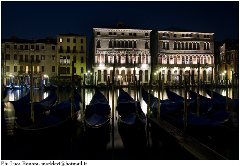 Scatto bellissimo, nitidezza e colori in questo scorcio notturno la fanno da padrone, molto belle anche tutte le gondole al riposo bellissimo sembra di sognare Ok! Ok! Ok!