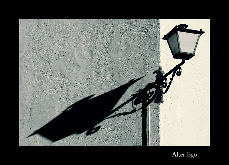 Bellissima quest'ombra "alter ego" che si staglia più grande ed imponente, prepotente rispetto al soggetto, all' "io".