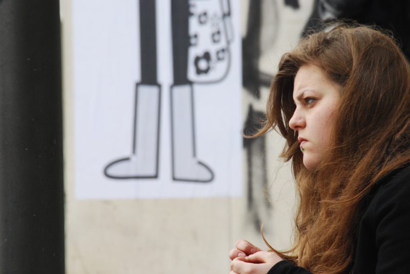 -le gambe disegnate sullo sfondo che "rubano" l'attenzione rispetto al soggetto vero della foto.