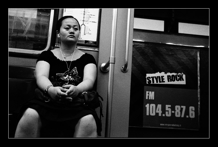 bello anche il b/n e l'essere un po' storta che dà l'dea di uno sguardo buttato di trafuga ad una vicina in metropolitana.