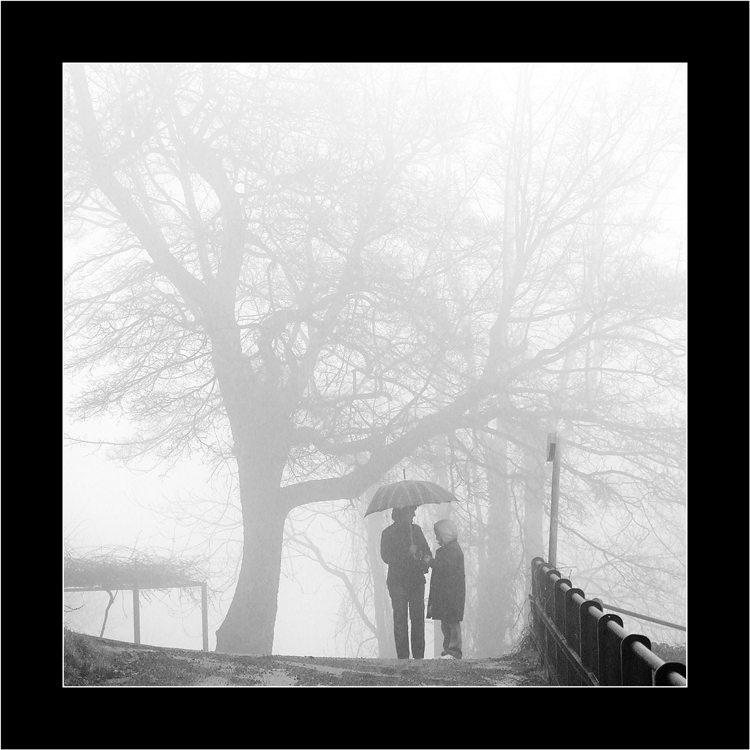 parlarsi sotto a ramificazioni nel grigio nebbioso. una splendida immagine che trasmette sensazioni