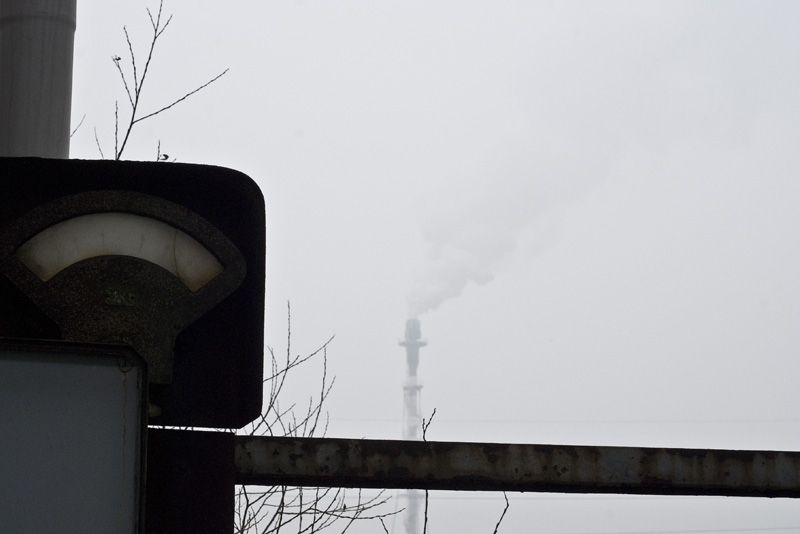 In questo scatto (ormai posso scriverlo) volevo contrapporre le vecchie strutture in disuso (la cornice) a quelle nuove (la ciminiera che sbuffa), cosa che immagino avrebbe avuto più senso in un reportage.