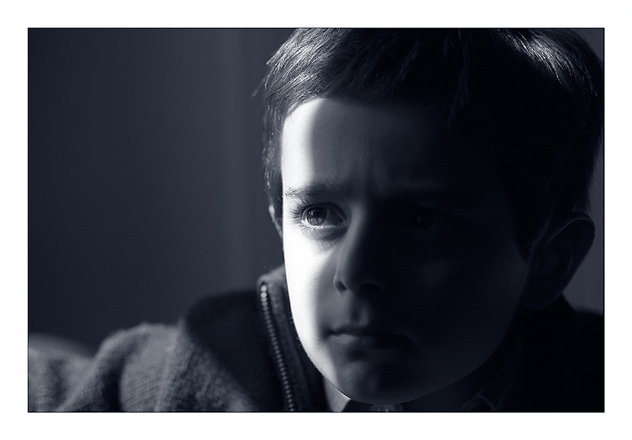 Bellissima la linea di luce che esalta l'occhio pensoso di questo bimbetto.