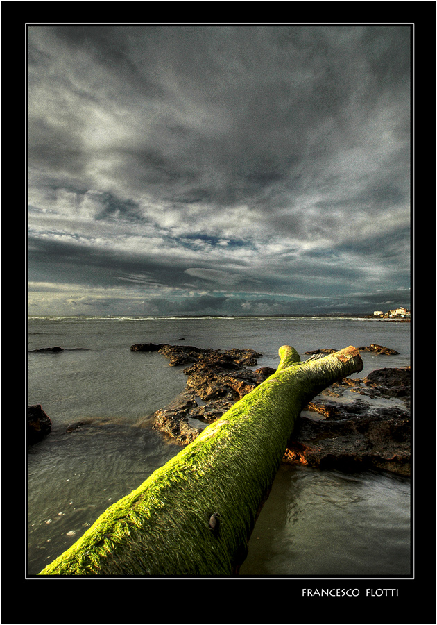Particolare la scelta di mettere l'orizzonte perfettamente a metà, come a volere separare due modi; due mondi a cui il tronco sembra voler fare da ponte.