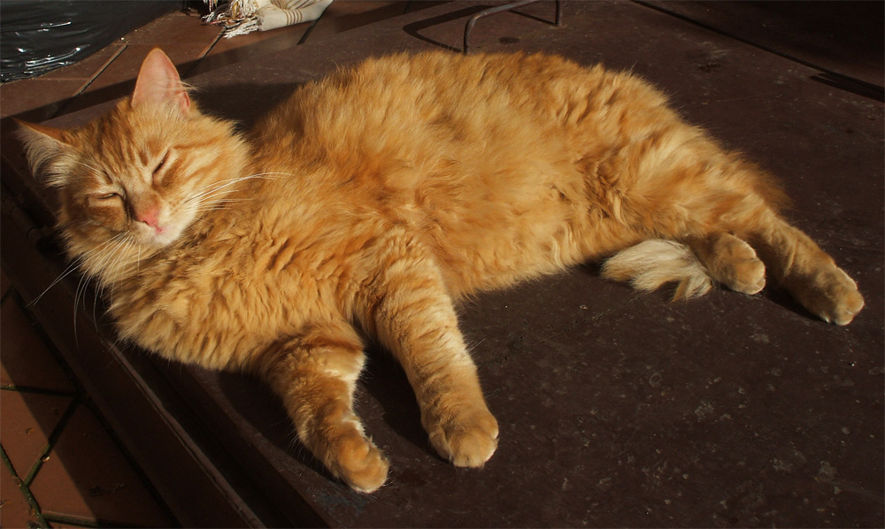Ottima l'espressione. Si nota tutta la soddisfazione del felino nello stare adagiato godendosi il calore del sole.