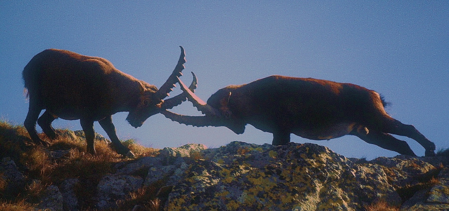 Nella stagione degli amori i maschi di stambecco si battono furiosamente per assumere il comando del branco e, con esso, i favori della più bella....