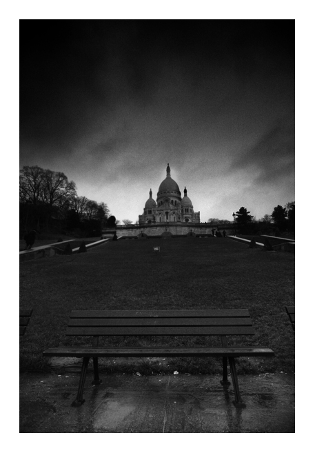 C'è poca differenziazione dei toni, la panchina affoga nello stesso grigio del prato. Se l'originale è a colori potresti provare ad applicare un filtro per staccare.