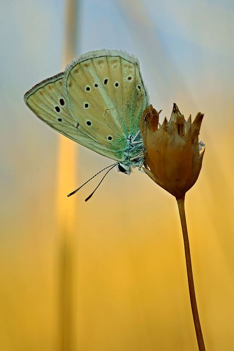 Lo stelo in giallo sul secondo piano è forse un po' troppo evidente.... ma le tinte vivaci della farfalla risaltano in bella nitidezza sul giallo denso dello sfondo