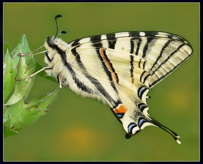 C'è quella fogliolina dietro al podalirio che vanifica la riuscità dello sfondo (apprezzabile nella maggior parte della scena)