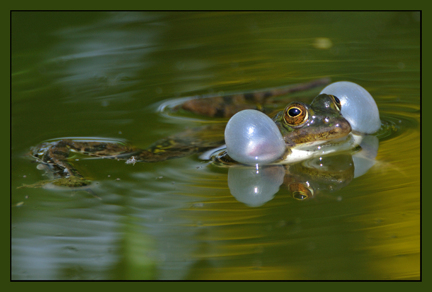 Ottimo il colore dell'acqua e bello il primo piano della rana