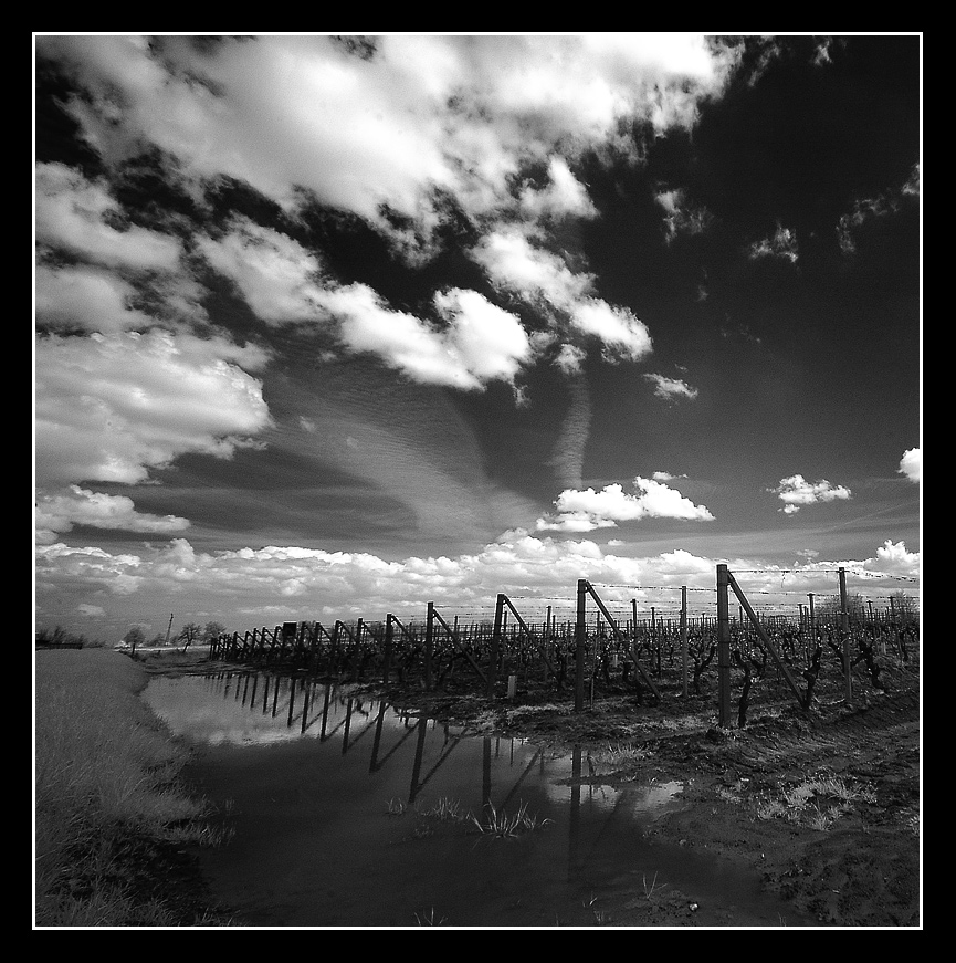 Mi incuriosisce soprattutto una cosa: in che modo sei arrivato ad un bianconero così contrastato (penso alle nubi riflesse nell'acqua fangosa) partendo da un originale dai colori così poco saturi?