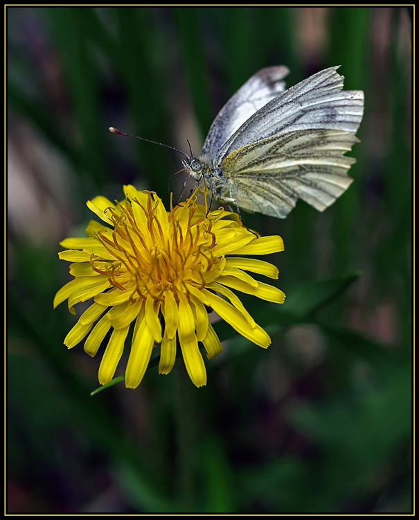 la composizione e' veramente bella, ottimo il contrasto del fiore giaoolo con le varie sfumature della farfalla, buona anke la maf..... Ok! Ok! Ok!