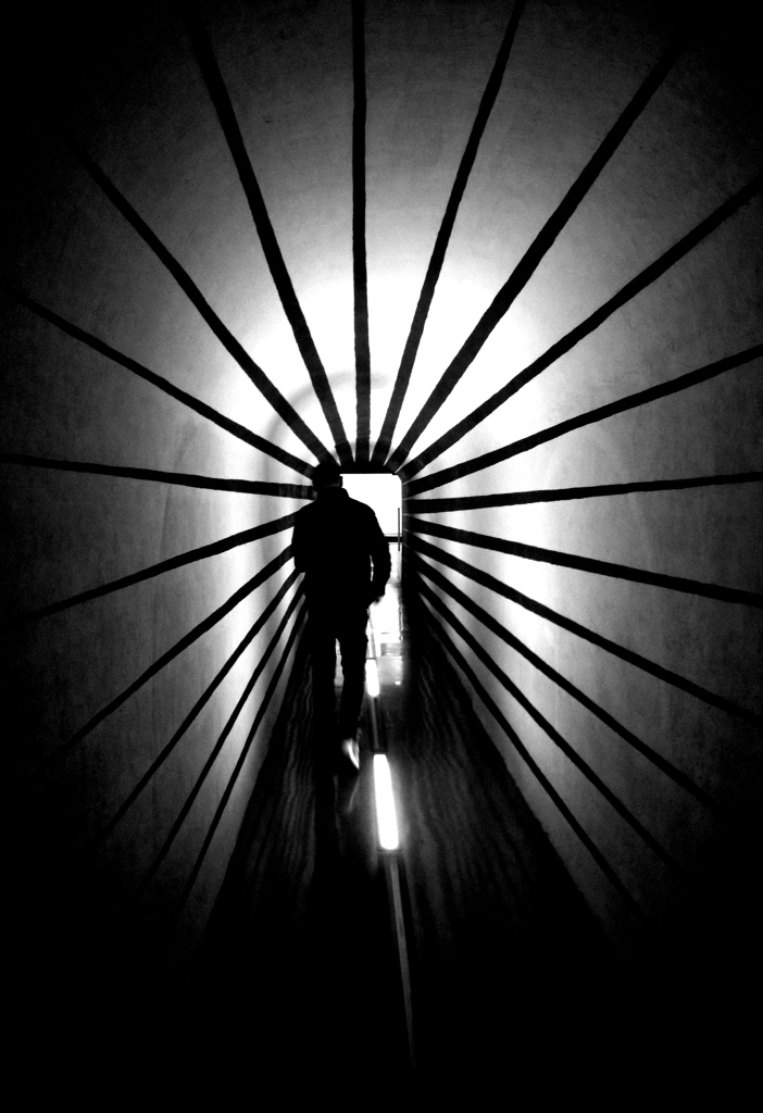 ho scattato la foto all'Ex Aurum di Pescara, questo è un tunnel opera di un artista tedesco (o almeno spero che sia tedesco) del quale non ricordo il nome, e io passandoci dentro, ho semplicemene scattato senza flash sottoesponendo tutto quanto, poi ho convertito in B/N e questo è il risultato...a colori rende davvero poco...