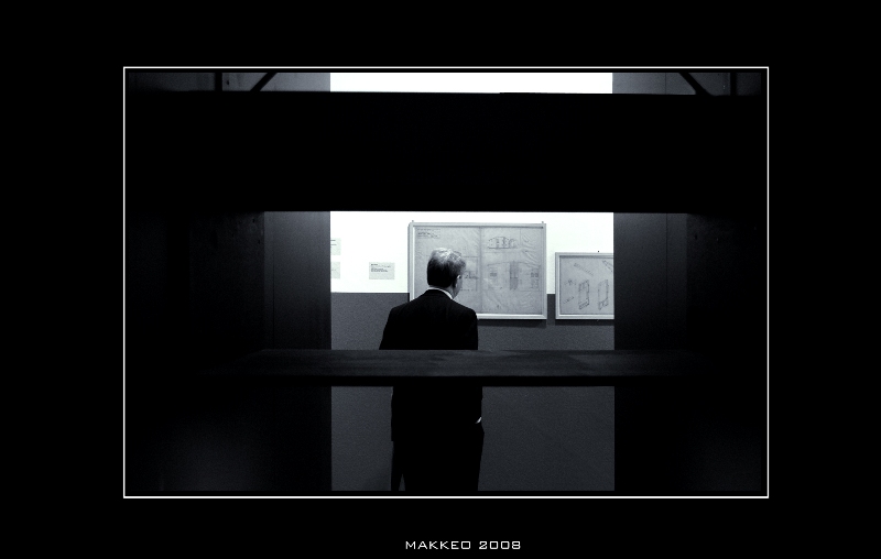 L'uomo che è il centro di interesse nell'immagine ha l'aria giusta per uno che si trova a guardare con attenzione le schede di un Museo.