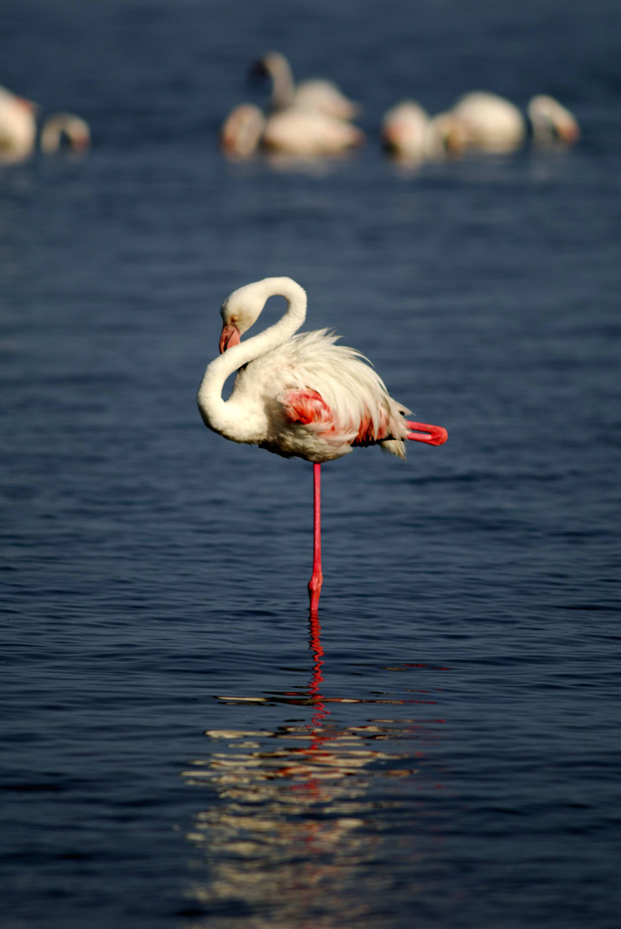 In questo tuo scatto ci sono delle cose che condivido come la scelta di non tagliare del tutto l'ombra e la resa cromatica, e delle cose che non condivido come ad esempio il soggetto un po troppo centrale...inoltre, credo che il fenicottero non sia proprio ben a fuoco...