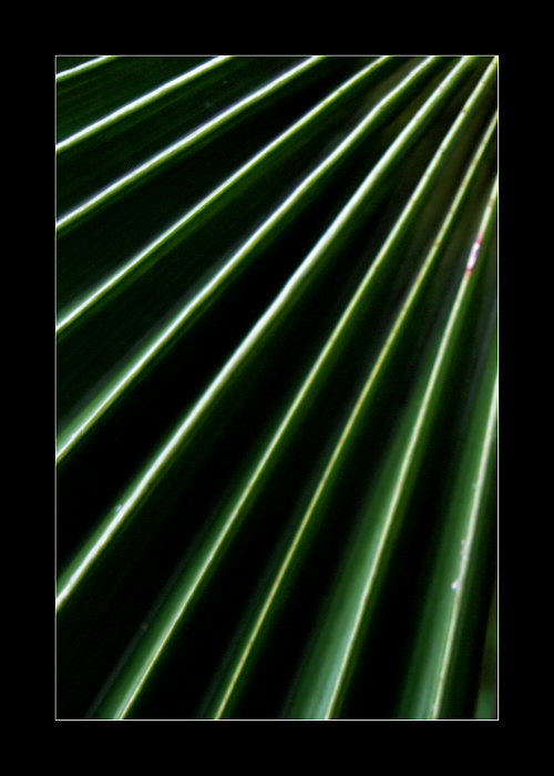 bellissimo effetto geometrico come di raggi di una realta' aliena, dalla semplice efficace linearita'. peccato per quella macchia che si nota su quella che suppongo la costa di un qualche vegetale facilmente eliminabile in software.