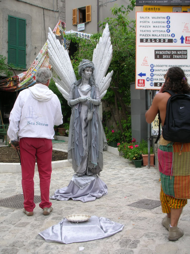 Visto la particolarità del mimo, avrei aspettato ke passasse qualcuno + intrigante, per creare qualke accoppiata + interessante (ad esempio qualke tizio vestito tutto di rosso x amplificare il connubio angelo-diavolo..)
