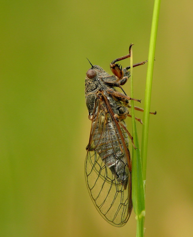 Quando mi capita di non trovare nulla, entro nella cosiddetta "scala della formica", e così ho fatto anche oggi, mi sono messo in mezzo all'erba ed ho aspettato che gli occhi si abituassero al micromondo, ad un certo punto ho iniziato a scorgere i ragnetti neri saltatori, due ragni killer(uno nero e uno giallo) che contemporaneamente predavano una mosca, ad un certo punto vedo la Cicala :shock: , a quel punto mi sono seduto comodamente a terra (peccato che non avevo portato il cavalletto ma a quel punto era troppo tardi) ed ho inizato a scattare in tutti i modi possibili(il vento forte non dava tregua) e non vi nascondo che ho dovuto spesso fare panning inseguendo la cicala che dondolava insieme all'erba per cercare di non farla venire mossa.
