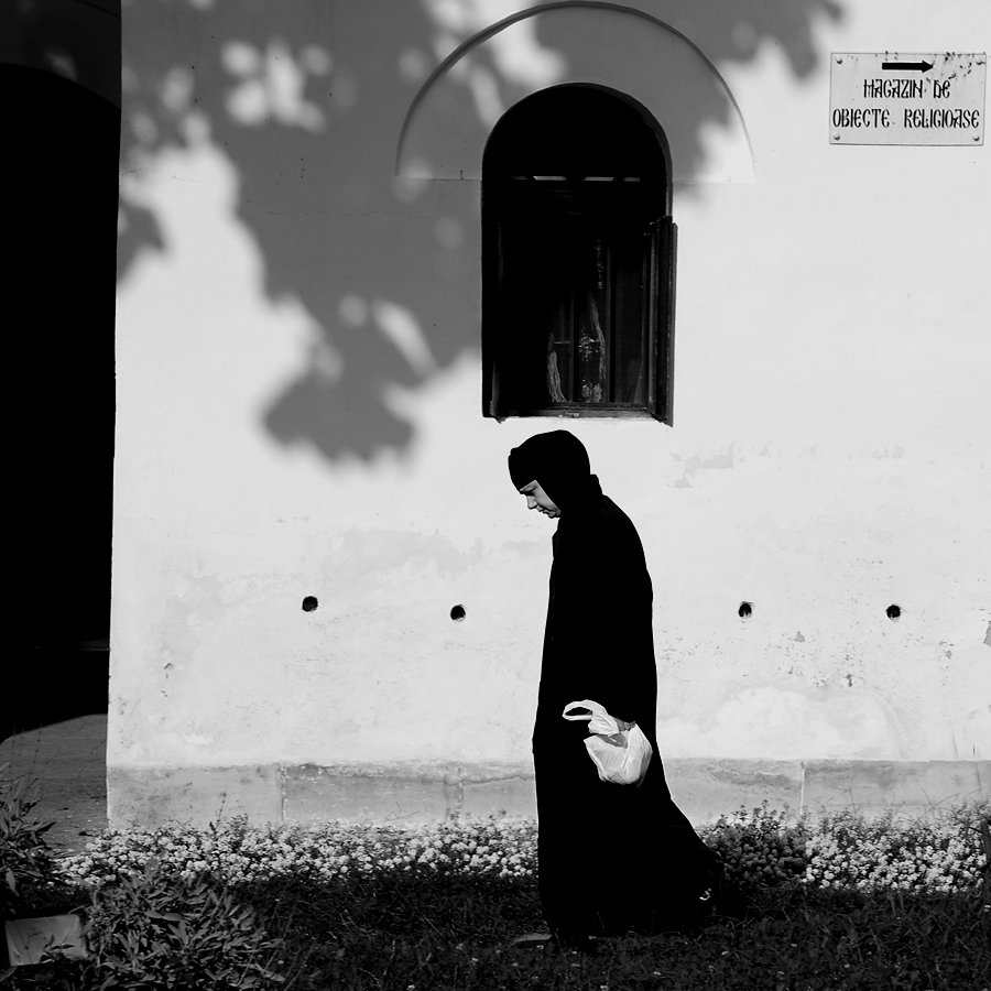 Con i neri così chiusi la suora sembra un'immagine stampata sul muro