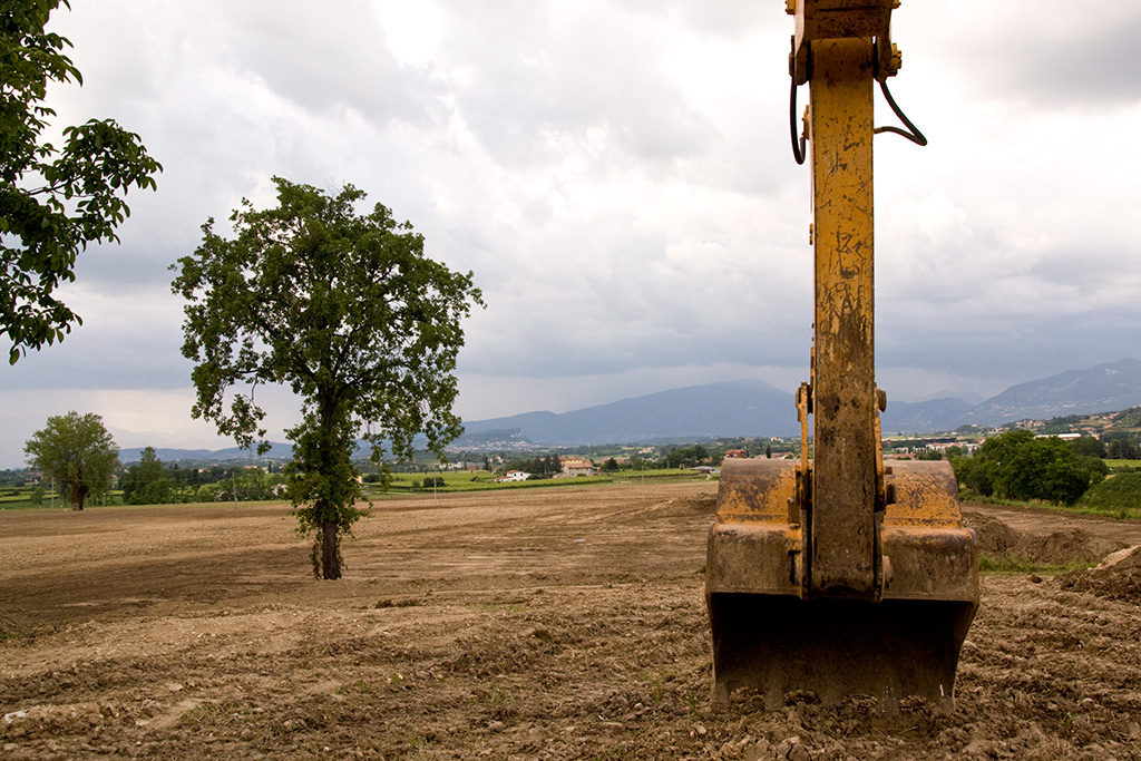 sarebbe stata piu d impatto se gli unici protagonisti della scena fossero stati la benna e l albero, quindi avrei tolto quell albero che si vede per metà sulla sinistra...