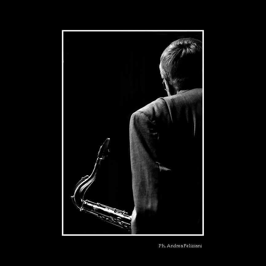 inconfondibile nei tuoi splendidi ritratti in bw, . Nella foto di apertura hai gestito la luce in modo magistrale, i riflessi sul sax sono notevoli. La silouette del musicista sembra far da cornice allo strumento.