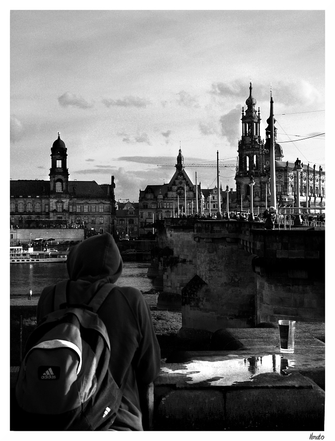 Ottimo il BN e l'inquadratura complessiva. Ma non mi piace il soggetto in primo piano. Era, a mio modesto avviso, meglio introdurre un elemento non umano per bilanciare lo sfondo. Perché, sennò, si perde il filo, la foto si sbliancia tra ragazzo imbaccuccato (poco fotogenico in sè, devo dire) e monumentalità dello sfondo. Così, alla fine, non è né carne né pesce.