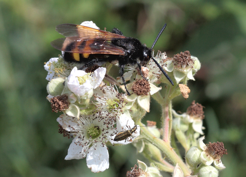 Sarà colpa del colore corporeo, ma mi sembra di vedere più dettaglio sul fiore che non sull'insetto, antenne a parte.