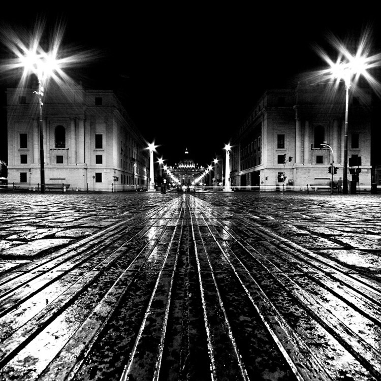Davvero ben scelta l'intenzione di ottenere la simmetria compositiva, e l'altezza dello scatto, che ha conservato gran parte della prospettiva e delle linee che portano lo sguardo verso il ''centro del mondo cattolico''..