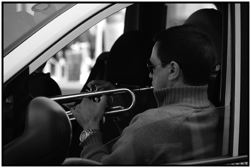 Certo che non capita tutti i giorni di vedere una persona che suona la tromba in macchina