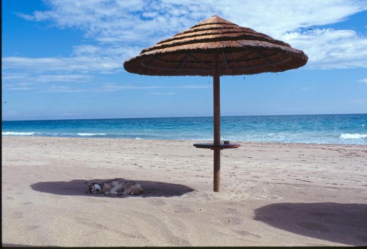 La foto non è certo nitidissima ( consideriamo che proviene da una scansione....) , l'orizzonte è pendente e la composizione forse migliorabile.... ( rispetto più rigoroso della regola dei terzi, taglio impreciso dell'ombra del secondo ombrellone, e un lembo di una terza ombra in basso a sinistra.... )