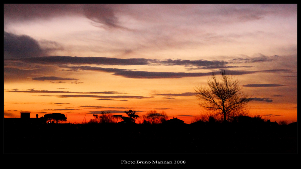 I colori sono spettacolari, la composizione, con la resa in silhouette degli alberi e delle case, interessante.