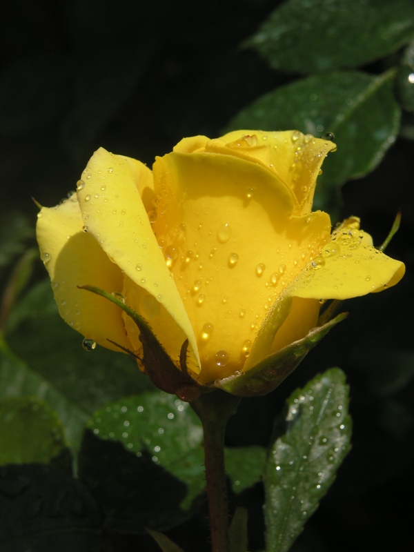 Bella la rosa col suo giallo cremoso, buona l' idea della spruzzatina d'acqua e la maf sulle goccioline pendenti