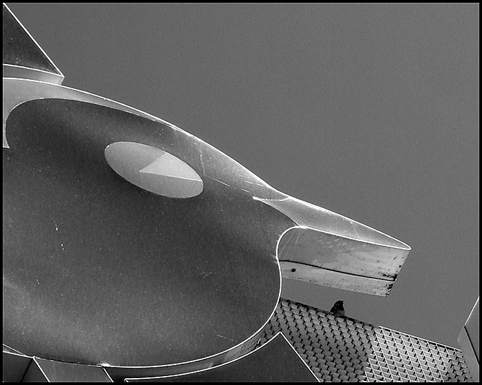 NOn so cosa rappresenti l'insegna, ma sembra veramente un testa d'uccello... quasi un clone del volatile vero... bel colpo d'occhio... avrei estremizzato maggiormente il B/N e forse tagliato un po' a destra, ma di quello non sono così sicuro Smile